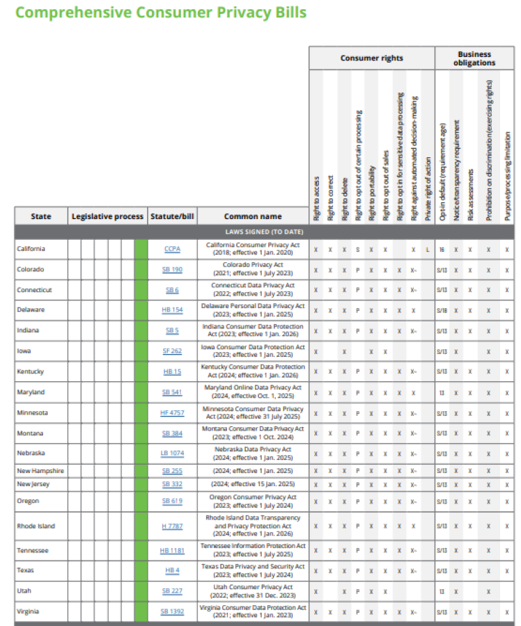 Many states across the US are passing privacy legislation which address certain consumer rights as well as business obligations.